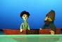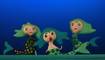 Quakadus Warnungen zum Trotz schwamm Dini zu Hans, um ihn vor dem nahenden Hochwasser zu warnen. Von da an hatte auch Hans nur noch Augen für Dini. Er floh mit seinem Vater vor dem Hochwasser, doch als die Flut zurückging, machte sich Hans sofort auf die Suche nach seiner Dini...
